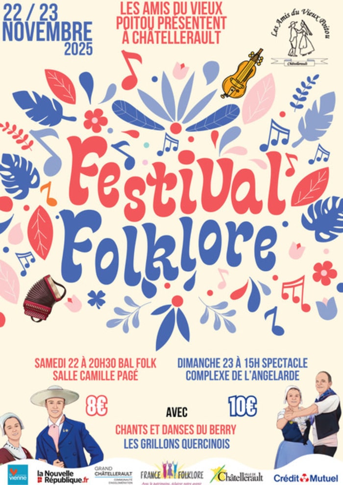 Dimanche 23 novembre : Festival de folklore à 15 h au complexe culturel de l'Angelarde à Châtellerault.