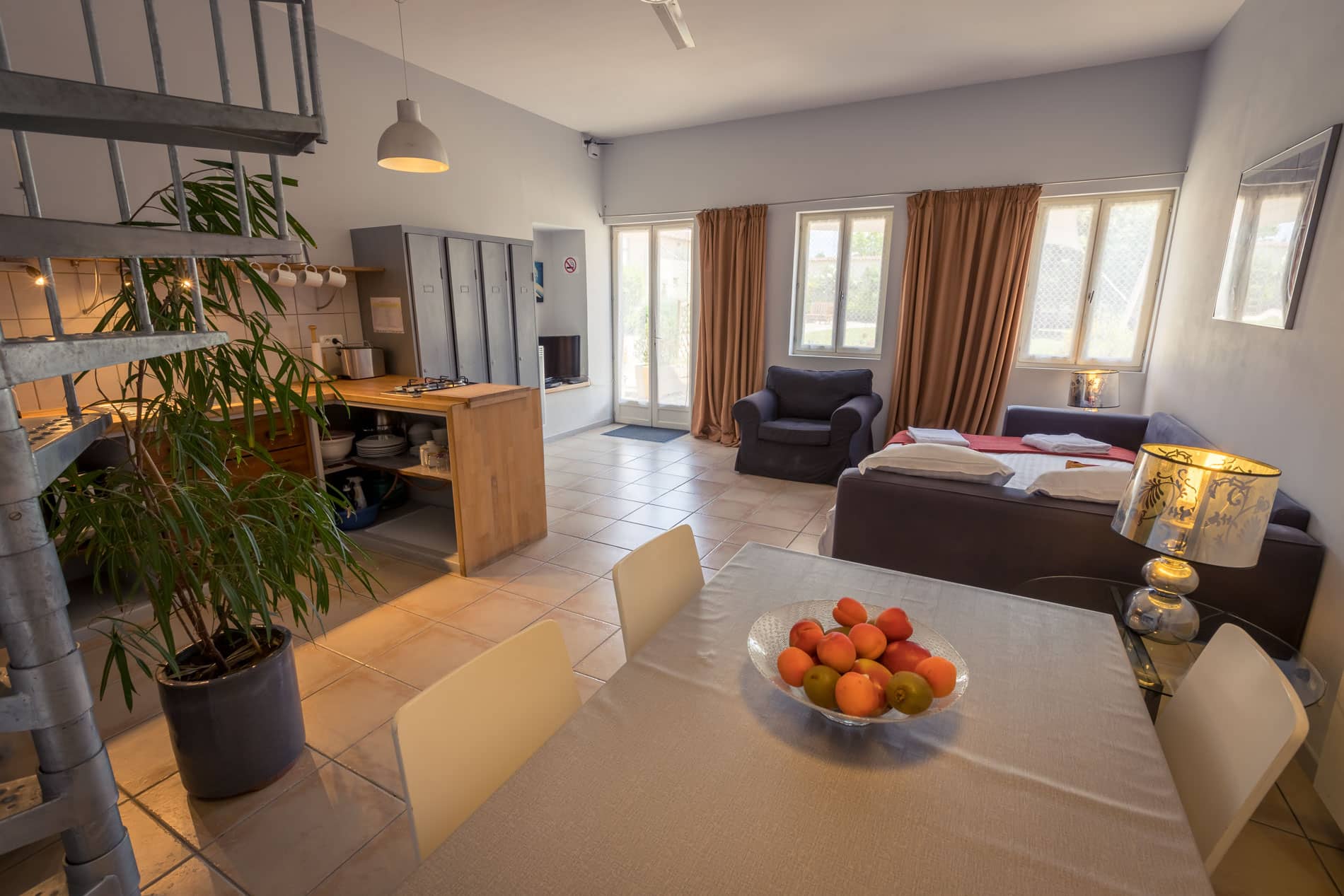Les locations peuvent se faire de manière groupée (4 gîtes indépendants 4, 4, 6, 8 personnes) avec accès à un espace commun avec salle à manger et cuisine semi pro.